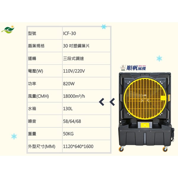 綠陽能源環保有限公司 - 順帆工業水冷扇ICF-30產品
