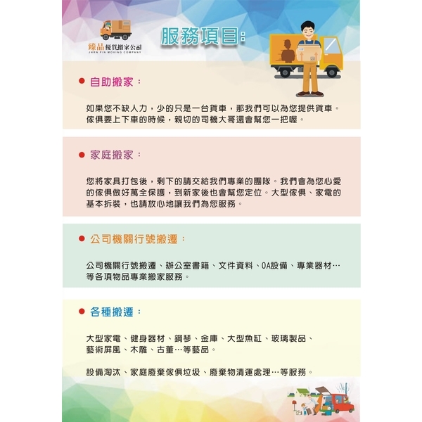設備淘汰、家庭廢棄俱垃圾、廢棄物清運處理...等服務。