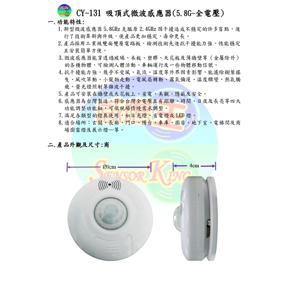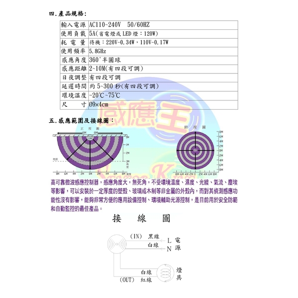 1.新型微波感應器5.8GHz克服原2.4GHz因干擾造成不穩定的許多盲點,進行了技術革新與升
