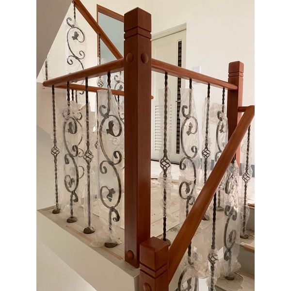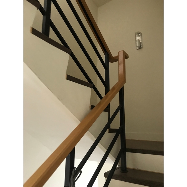 樓梯扶手 藝術鍛造扶手 室內裝潢 超耐磨木地板 台中扶手地板 日式風扁鐵扶手