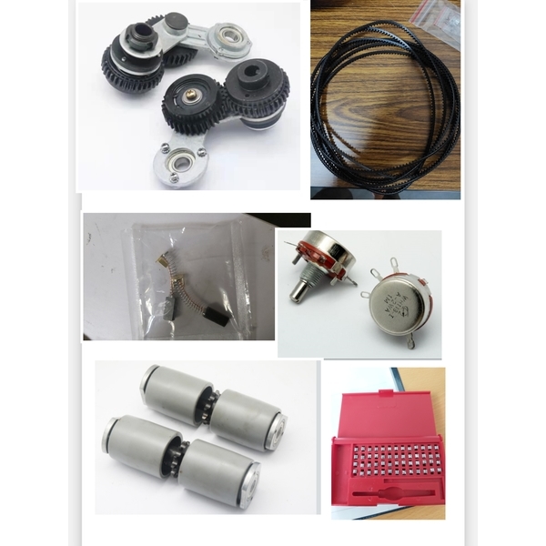 • 連續式封口機周邊相關耗材零件.印字輪.字粒.三角皮帶.鐵氟龍環帶.碳刷.溫控器.電熱管.馬達.電源開關等....