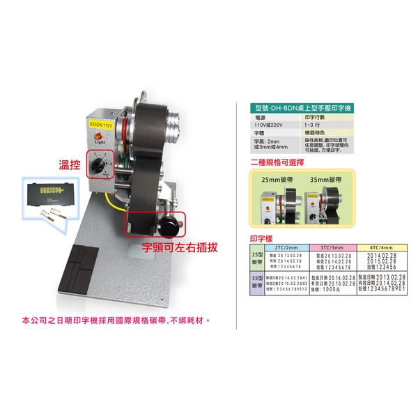 專營:TTO 碳帶、墨球、墨輪、條碼碳帶、色帶、製造有效日期、食品包裝標示、自動包裝機、印字日期機、熱轉印字機、日期標示設備、銅字鋼字、TTO. TTR熱轉印碳帶、固體墨輪、熱轉印字機