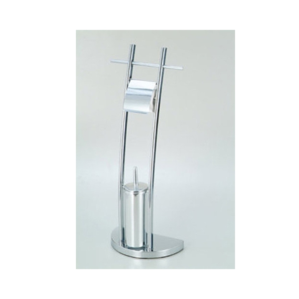 上方可放入捲筒式衛生紙,而下方則是馬桶刷,節省空間。