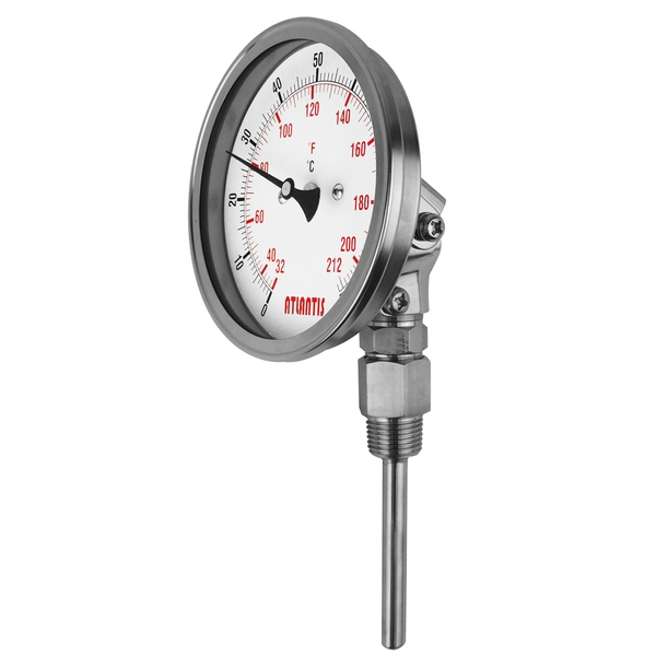 BTA可調角型溫度計採雙金屬感溫元件,可依安裝需求調整角度。溫度量測範圍廣 (-50 至 600℃),可訂製測棒長度與外徑大小,適用多種工業溫度量測需求。