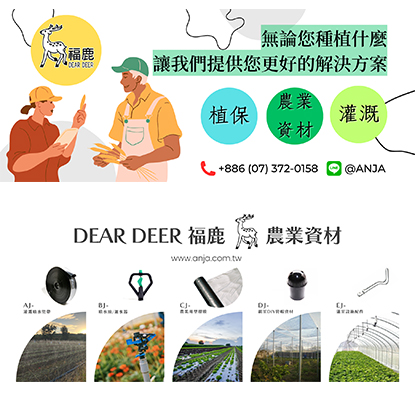 噴水管灌溉系統、防草防蟲覆蓋地膜、噴水灌溉噴頭、噴灌器材、噴灌系統、滴灌器材、滴灌配件、滴灌系統、滲水管、漁業養殖曝氣管、網室配件、網室器材、陣列式網室系統、農業資材、溫室配件、溫室器材、溫室系統、滑門灌溉系統、造霧配件、造霧系統、降溫系統、地面固定插、育苗盤、噴藥噴槍、超高壓噴藥軟管、隧道棚透明膜、農園藝用膜、防草保溫資材、防草保溫固定器材、育苗用穴盤、農園藝容器、農園藝用網繩線、農園藝固定器材、PE管、PE配件、PE材料、農園藝資材開發、農園藝設計、農園藝諮詢規劃、農園藝施工