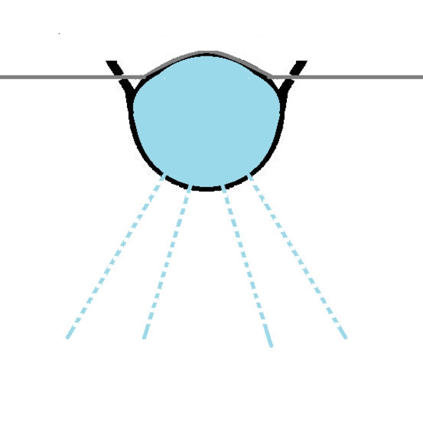 依我們目前的規格,比起另一種AJ-105W吊翼式噴水管AJ-104H,双羽吊式噴水管一般管徑較大,操作的壓力較低,噴灑的霧化程度較不那麼綿密。