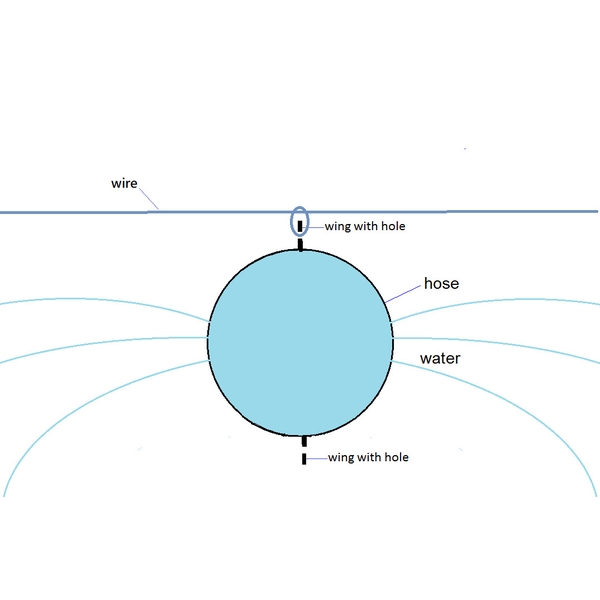 噴水管懸掛在空可以保持地面淨空,方便人員或農機在地面行走或作業。在室內,它用在網室或溫室灌溉。双羽吊式噴水管也可以調整兩翼的吊孔懸掛物的角度,或者分別懸掛在不同的懸掛物。調整兩邊吊翼的高低可以調整噴灑方向到所需的方向。