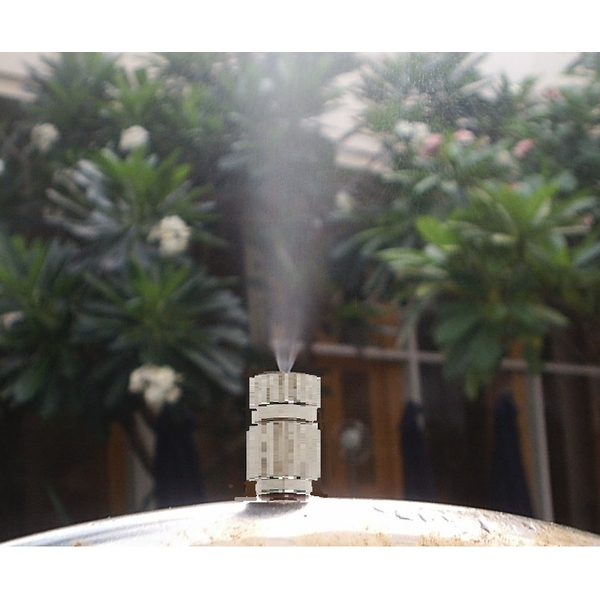 造霧系統所使用的噴霧頭,金屬材質(另有不鏽鋼材質)耐用不易生鏽。