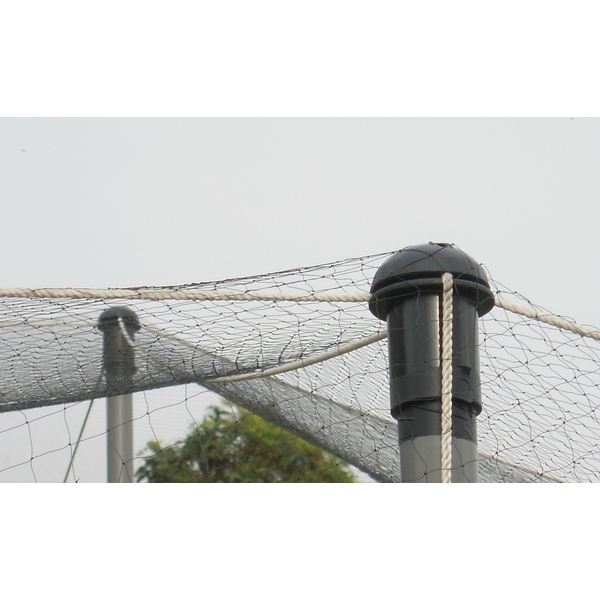 由於平頂網室的建設很簡單,我們必須更加注重加固其結構。當然,網和支柱必須足夠堅固以抵禦強風、暴雨和陽光中的紫外線,但支柱頂部的固定帽和連接每根支柱的繩索或鋼索處於更關鍵的地位。