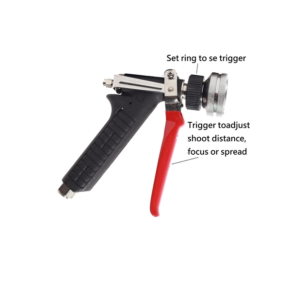 4. 噴出的農藥可以調節分散或集中。扳動噴槍的調節板機獲得所需的擴散角度後,轉動固定環以固定噴槍的調節板機。即可將手指從噴槍的調節板機上移開,輕鬆讓噴嘴以設定擴散角度噴藥。