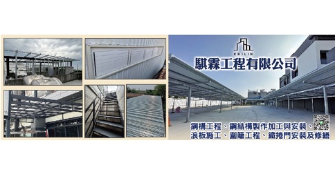 浪板施工、鋼構工程、圍籬工程、鐵捲門安裝及修繕、鋼結構製作加工與安裝