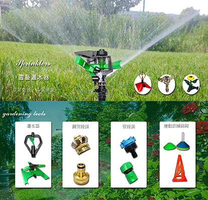 園藝水管、水管噴嘴、水管接頭、灑水器、園藝用魔帶、塑膠管接頭、手槍式噴嘴、溜冰用路障、銅管接頭、水管車、管接頭、 園藝工具、五金產品、 塑膠製品、運動用品