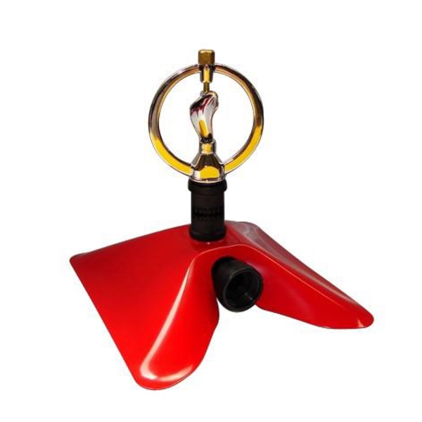 . 紅色金屬底座 + 圓形灑水噴頭(可搭配其他4分牙的灑水噴頭), 適用於花園及草坪噴灑,如:JS-4041