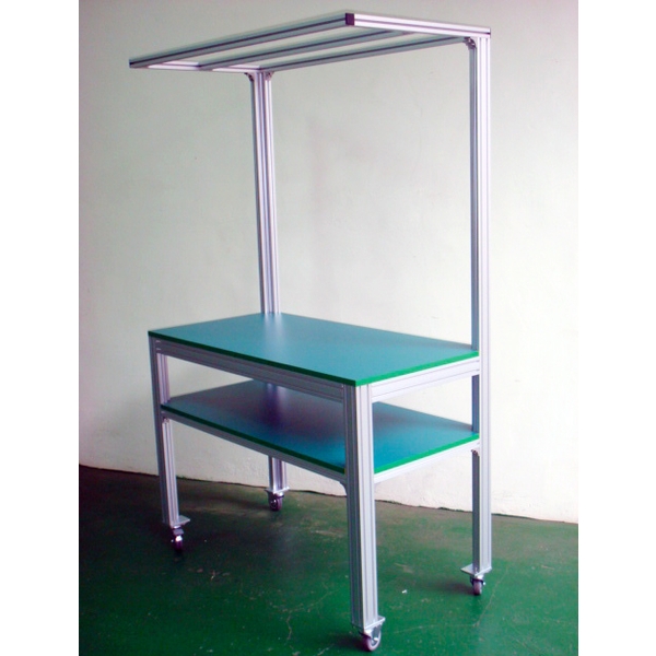 鋁擠型工作桌搭配儀器輪,更加方便移動,可變成工作站使用