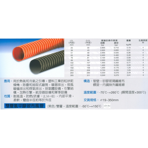 雙層矽膠玻布風管產品介紹 - 坤吉五金橡膠企業行