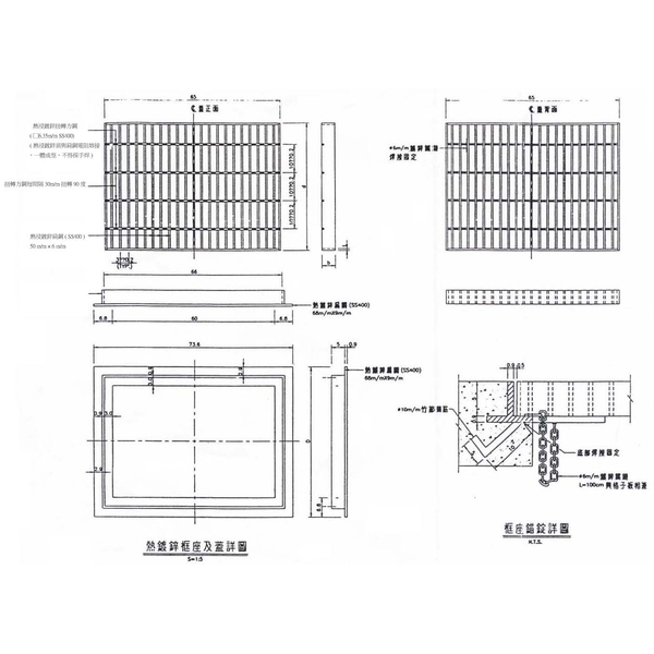 2. 封邊:格柵板兩邊桿以 h*6mm之扁鋼為邊框,焊渣應清除乾淨。
