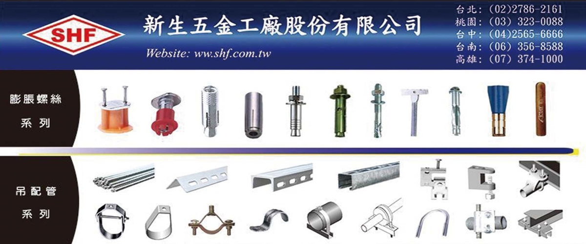 膨脹螺絲、化學錨栓、吊配管等系列、尼龍套、新生型鋼有孔角鐵、化學錨栓、吊配管零件、單支、有孔角鐵、新生型鋼、工自樑、鋼構、吊具、防震、吊具、保溫管墊、電管配件