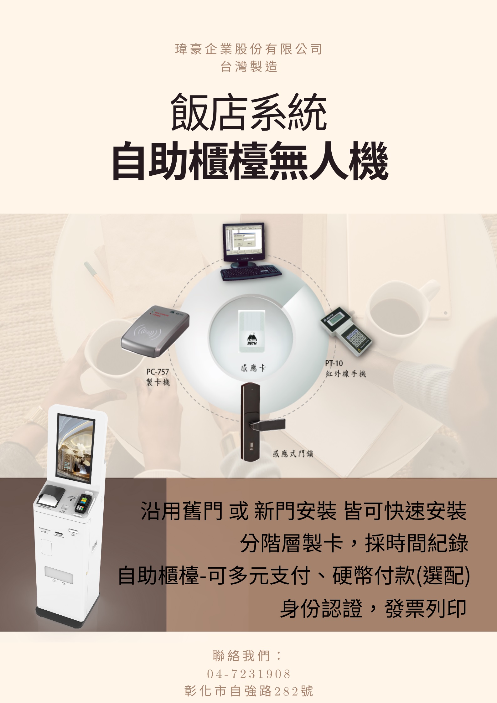 飯店系統「自助櫃檯無人機」,實現一卡通行的完整解決方案,歡迎來電由專人為您服務!