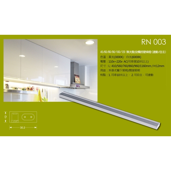 RN003 無光點單點觸控硬條燈,是我們對**「高品質、簡約生活」**的承諾。讓您的廚房照明回歸最純粹、最實用的狀態。