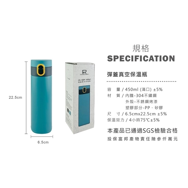 【FRANCASINO】彈蓋真空保溫瓶 450ml FR-1809-圖1