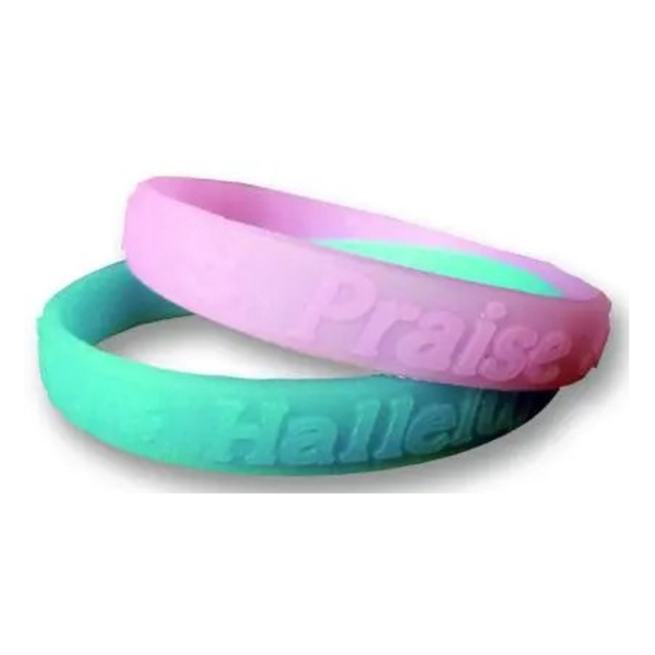 此款矽膠手環可製作 ”夜光效果” 或 ”螢光色