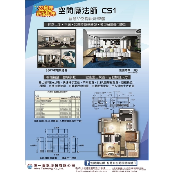 1998年以來,先後推出「專業版」、「精裝版」、「小小魔法師」,「學生家用版」、「網路多機版」、創業版、加購精簡版、精華版與菁英版,深獲專業設計師、愛好者與教育單位的好評與愛用。歷經23年風霜雪雨,不斷改版精進,從1.0版、2.0版到現在的CS1版,廣泛應用於室內設計、建築設計、展場空間、櫥窗設計、商業空間、磁磚/建材規劃、系統傢俱/廚具、景觀設計、房仲業、風水或辦公室廠房住家等多領域的空間應用。