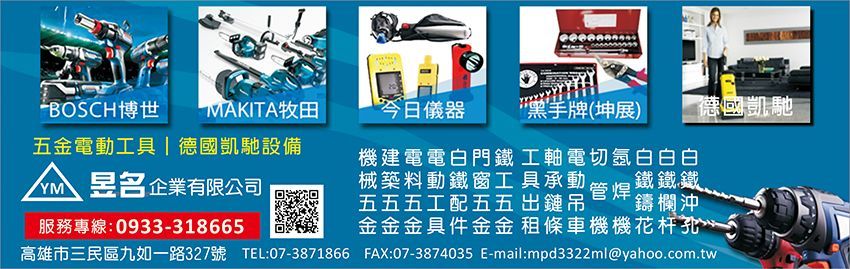 昱名企業累積多年的商譽,在品質、價格都值得您支持與信賴。本公司專銷售白鐵材料,白鐵沖孔管,欄杆鑄花,伸縮拉門,久信門片,進口鎖類,焊條油漆,彎頭丸球,皮帶承軸,壁虎螺絲,機械五金,建築五金,電料五金,電動工具,氣動工具,切削工具,測定儀器,焊接材料,電動吊車,專業技術均受各界肯定,感謝各界的支持,誠心期待您的光臨指教。