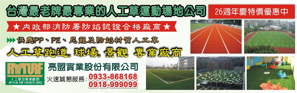 專營:人工草皮、人工草跑道、人工草球場、PP跑道、PP球場、PE跑道、PE球場、PE人工草皮跑道、PP運動場、人工草皮、人工草皮運動場、防焰型人工草、PP樹脂纖維、PE樹脂纖維、球場規劃、球場施工、跑道施工、彩虹跑道、彩色跑道...等。
