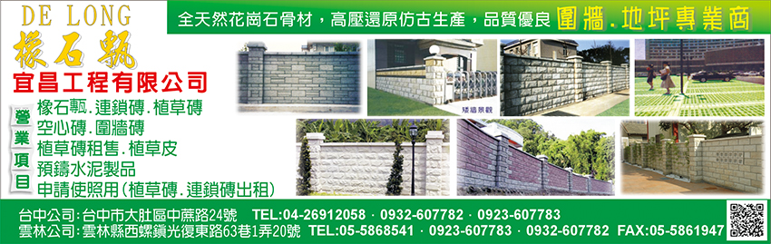圍牆工程、地坪工程、連鎖磚、植草磚、空心磚、圍牆磚、植草磚租售、植草皮、預鑄水泥製品、植草磚申請使用照、連鎖磚申請使用照、地坪專業商、坡景磚、橡石磚、工字磚、植草皮、陶磚、橡石、轉角磚、陶磚、岩石磚、指示夜光石、植草磚出租、連鎖磚出租、室內裝潢、設計、油漆工程、圍牆翻修工程、壁櫥噴漆、PU防水、木地板、輕鋼架、輕隔間、防火建材、圍牆景觀、圍牆隔間、玻璃磚、矮牆景觀、圍牆磚、橡石圍牆、預鑄水泥製品、植草磚出租、連鎖磚出租、全天然花崗石骨材、仿古圍牆磚、雲林圍牆磚、雲林連鎖磚、雲林植草磚、雲林植草皮、雲林空心磚