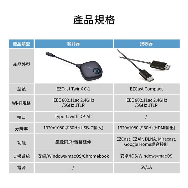EZCast TwinX 無線投影套組 Type-C影像傳輸投影-圖1