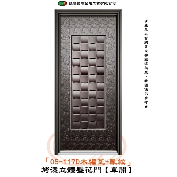 05-117D木編瓦+亂紋-烤漆立體壓花門【單開】-圖1