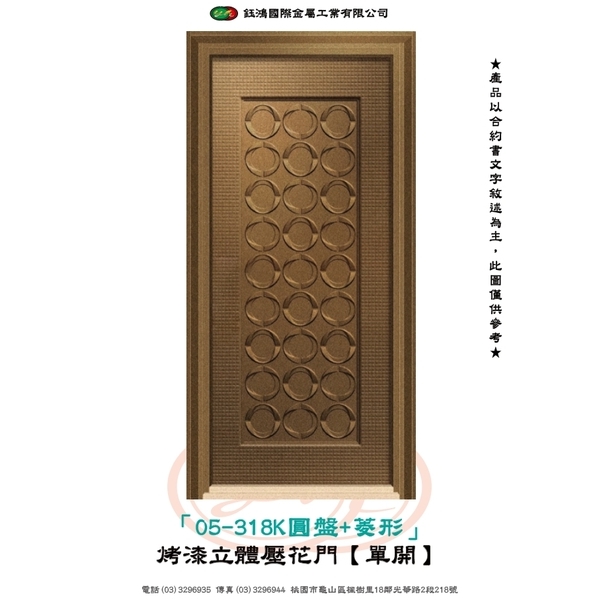 05-318K圓盤+菱形-烤漆立體壓花門【單開】產品說明