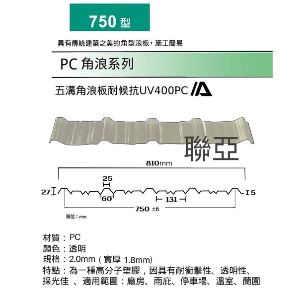 聯亞五金建材行/翊宭工程 - 750型-PC角浪系列產品