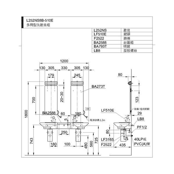 掛牆臉盆[L252NS8B(Y)-510E]-圖2