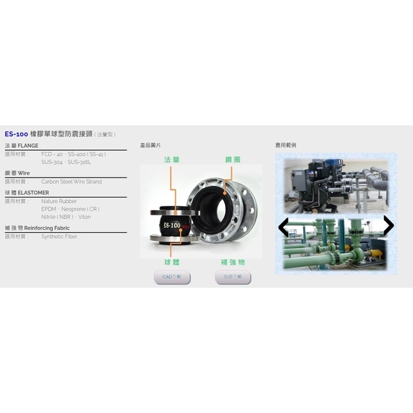 橡膠單球型防震接頭(法蘭型)產品 ,型號:ES-100 - 乙萱企業有限公司