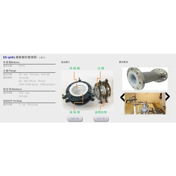 鐵氟龍防震接頭(法蘭型)產品 ,型號:ES-9061 - 乙萱企業有限公司