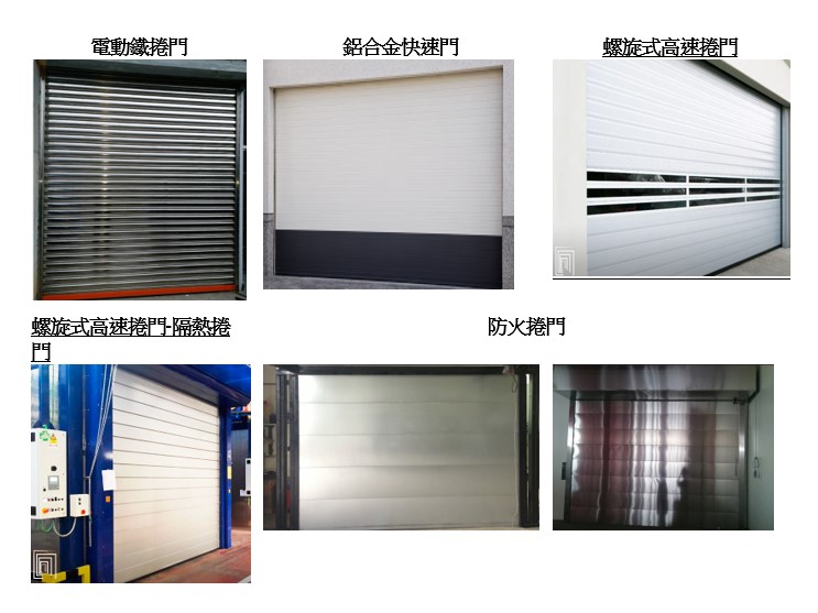 f) 防火捲門:經過特殊處理,具有一定的耐火時間。適用於需要符合消防法規的建築物。