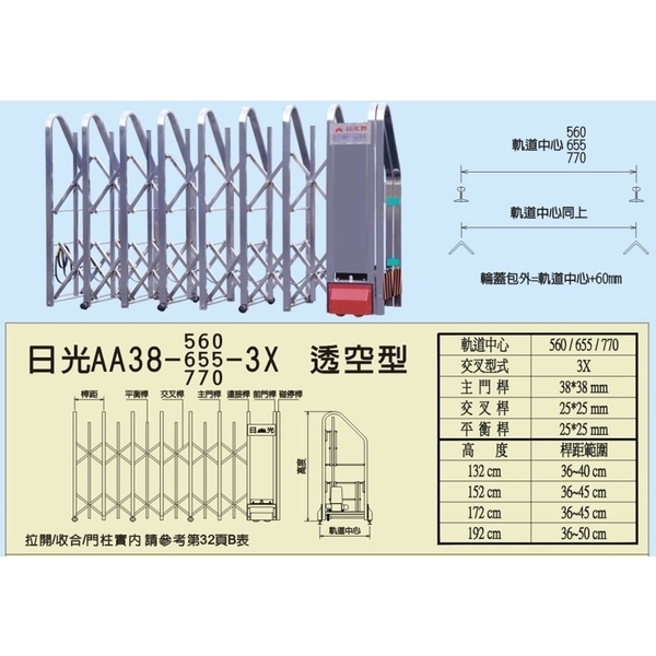 電動伸縮門半密型-日光牌 3X交叉桿型式