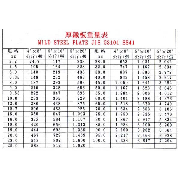 厚鐵板重量表產品介紹 - 森龍工業股份有限公司