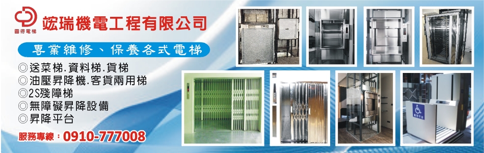 提供服務項目:送菜梯、落地式小貨梯、大型貨梯、客貨兩用梯...等,以不載人為主的升降機。