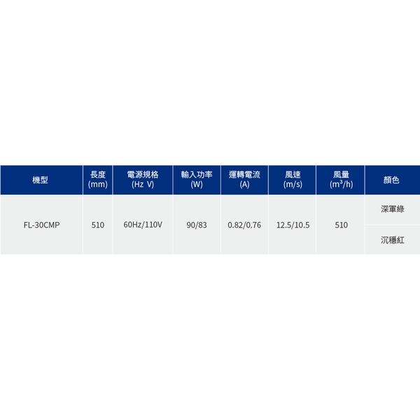 (以上機型標準配置為鐵質外框、塑膠扇葉)