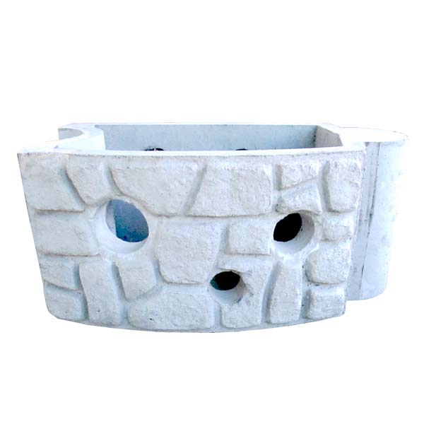 • 多孔隙設計,兼魚槽功能、常水位下可供魚蝦棲息、常水位上可植生綠化、為水泥製品,所以結構安全性佳、表面粗糙多變,提供景觀上的美化、可選擇預鑄或場鑄。