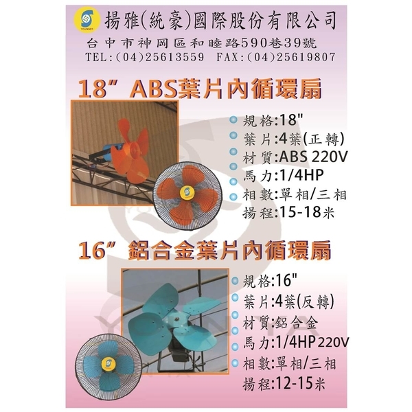 16.18吋內循環扇DM產品介紹 - 揚雅國際股份有限公司