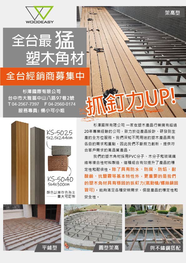 |全台最猛塑木角材|經銷商招募中,歡迎來電由專人為您服務!