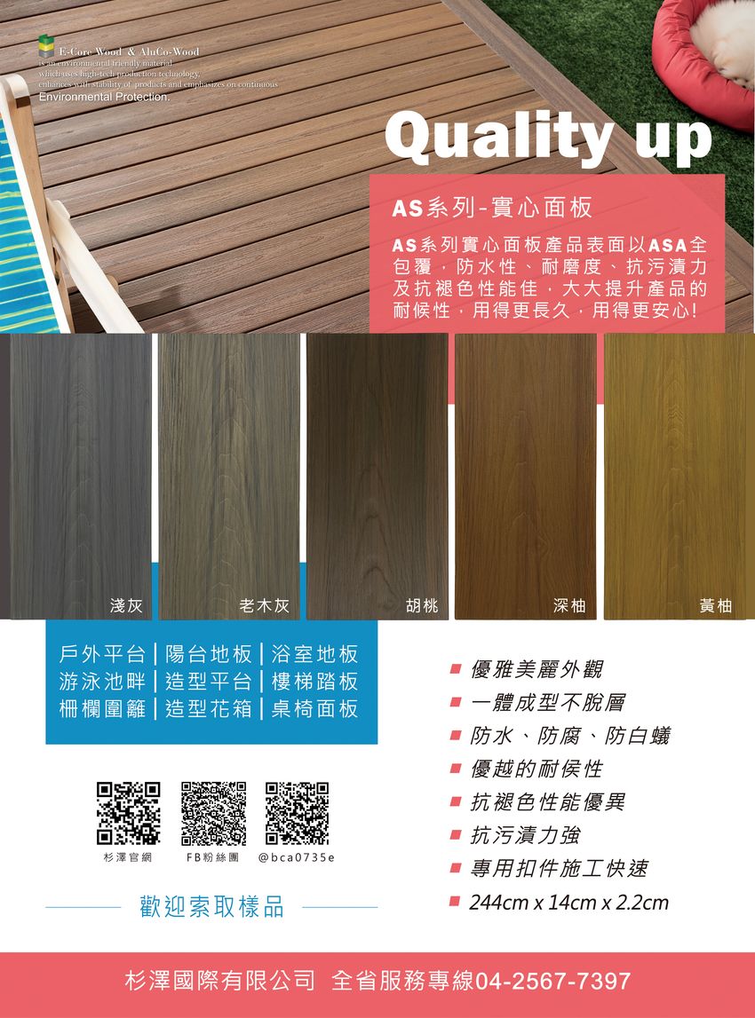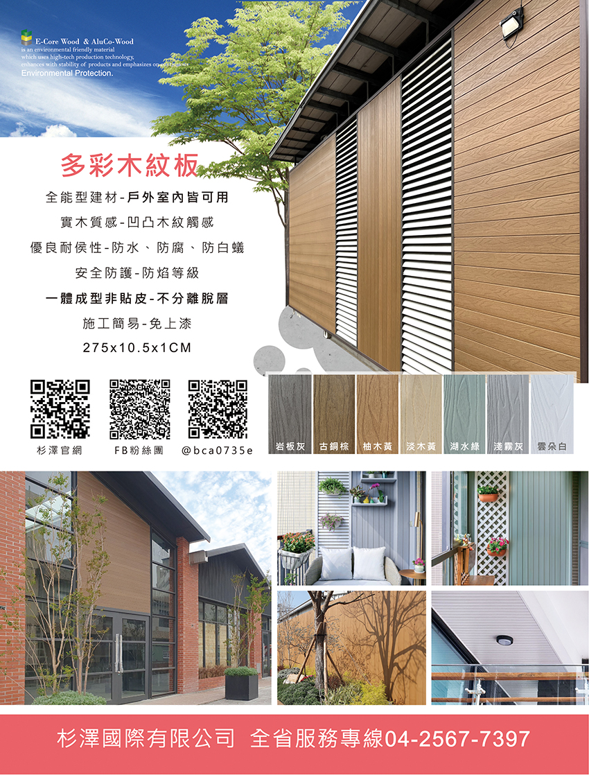環保木材、塑木、仿木、鋁新木、AluCo-Wood、沂可木、E-Core wood、WOODEASY、、戶外地板、地板平台、木地板、浴室地板、格柵天花、露天燈柱、屋頂板、欄杆、柵欄、涼亭、廊架、玻璃帷幕、陽光房、戶外花架、戶外大門、戶外家具、電動百葉窗、原木戶外傢俱、外牆裝飾、內牆、天花飾板、格柵、遮陽飾板、台中格柵、台中木易漆、台中電動百葉窗、台中原木戶外傢俱、台中天花壁板、室內裝飾壁板、台中室內裝飾壁板、庭園花架、廊道、候車亭、解說牌、圍籬、指示牌、陽光房、花台、遮雨棚、採光罩、花廊、綠籬、花盆、園藝、花棚架、告示牌、欄杆、柵欄、牆板、屋頂板、樓梯踏板、廊架、庭園燈、景觀燈、指示燈、草坪燈、別墅燈、塑木燈、公園燈、花園燈、標示燈