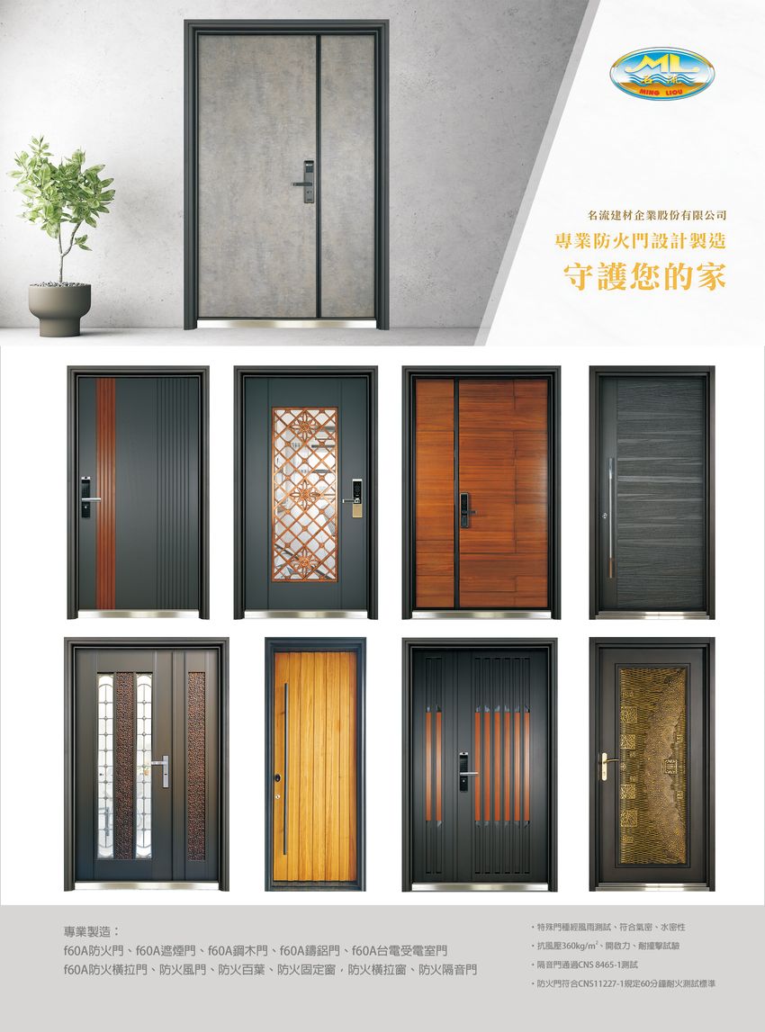 專門生產各建材類製品、防火門、遮煙門、隔音門、橫拉門、玄關門、鑄鋁門、鋼木門、防火窗等產品,備有技術研發部榮獲多項專利並持續研發創新以提供客戶最優質產品與客製化需求服務,竭誠歡迎各大營建工程公司、建設公司、建築師、設計師與同業先進採用。