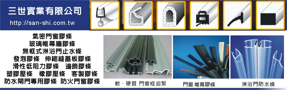專門製造橡膠與塑膠,應用於建築業界之帷幕牆、氣密門窗、防火門窗、伸縮縫蓋板...