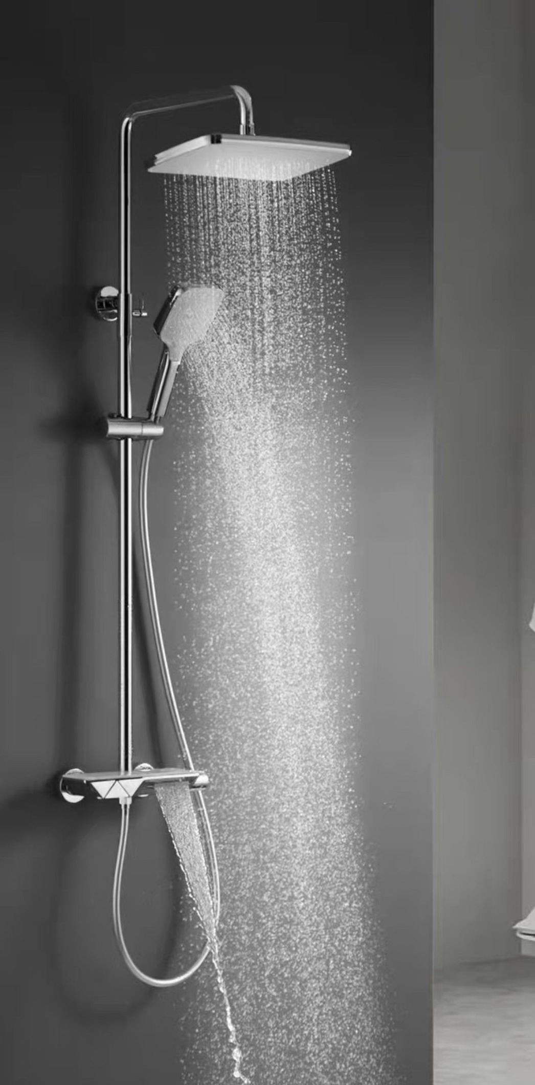 科龍衛浴科技公司按壓式花灑水龍頭,外型極具現代時尚與設計感,可搭配居家各式衛浴室的設計,王俊欽強調,該產品一改傳統旋轉式設計,彈跳式閥芯按壓關,方便、省力、耐用,配合溫度控制閥、可任意調整水溫,特別適合居家的老年人或者是長照機構使用。