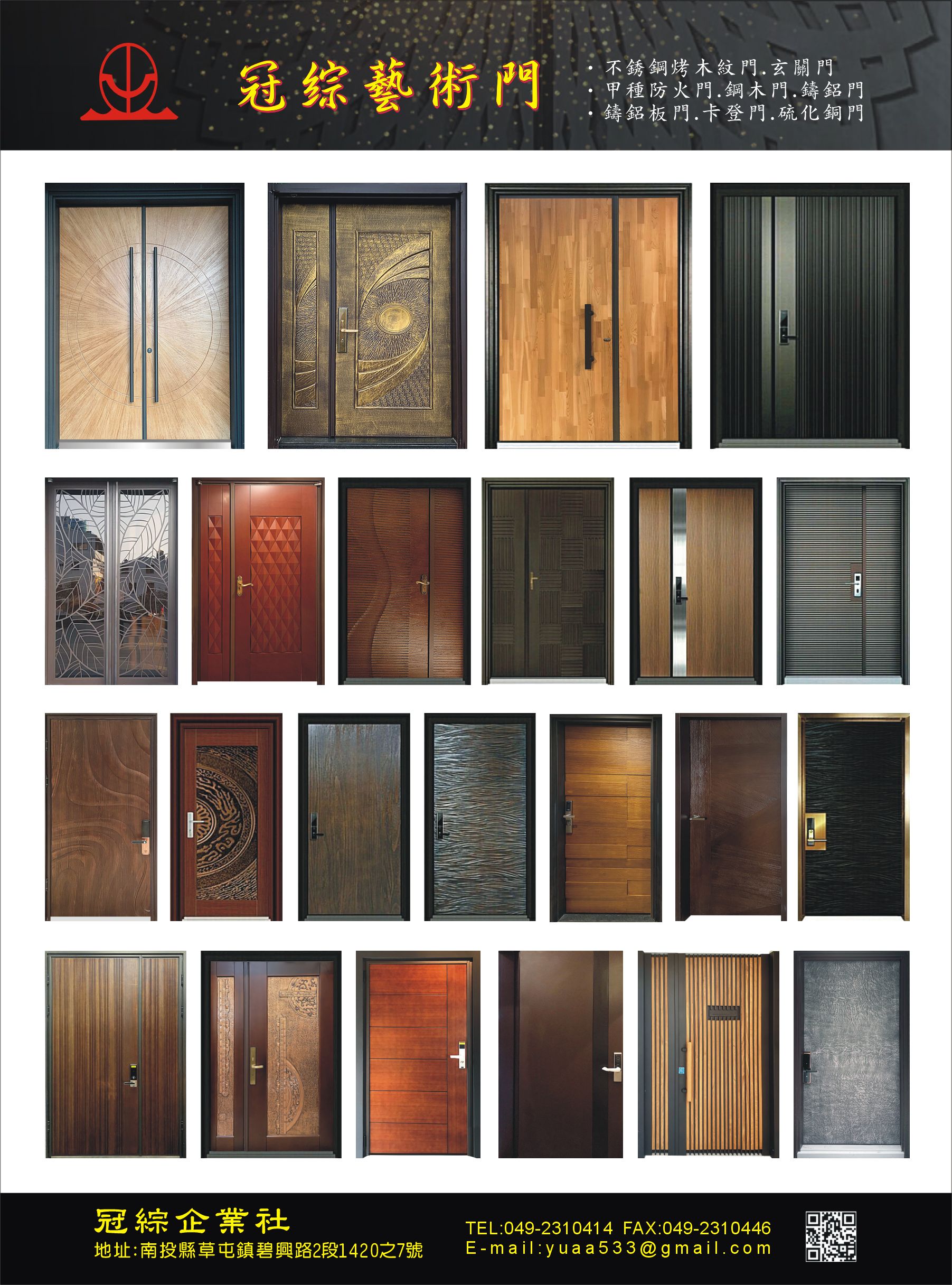 各式門類、不銹鋼烤木紋門、玄關門、甲種防火門、鋼木門、鑄鋁門、鑄鋁板門、硫化銅門、卡登門、大門、防火門、雙玄關、圍牆小門、庭園小門、庭園大門、烤漆門、單開門、雙開門、紗門、鍛造門、防盜窗門、自動門、欄杆、採光罩、遮雨棚、玻璃門、日式門、受電室門、南投防火門、南投玄關門、南投鋁鑄門、南投硫化銅門、南投鋼木門、南投門片、南投門類供應商