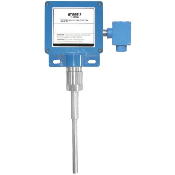 TS-3000SA 底接式方盲型溫度開關採用SPDT 微動開關,最大電流5A 與NEMA 4 / NEMA 4X 防水保護,適用於高電流環境的溫度控制。